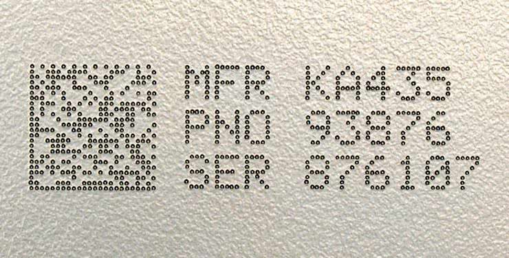 Dość powiedzieć, że niektórzy zaliczają do kodów 3D na przykład standard… QR Code (sic!). Inni tym samym mianem określają kody wielokolorowe, stanowiące np. złożenie trzech różnych, monochromatycznych kodów QR (np. czerwonego, zielonego i niebieskiego) w celu zwiększenia pojemności danych. Jeszcze inni do grupy kodów 3D zaliczają… opisane wcześniej wersje kodów 2D, ale utworzone za pomocą mechanicznych technik bezpośredniego znakowania (ang. DPM – Direct Part Marking), prowadzących do powstawania kodów o powierzchni nieznacznie wklęsłej (patrz fotografia 29). Wszystkie te próby klasyfikacji kodów kreskowych są rzecz jasna całkowicie błędne – jeszcze raz podkreślamy, że o wymiarowości kodu świadczy jego rzeczywista geometria, powiązana ze sposobem odczytu. Nawet jeżeli kod wykonany metodą mikroudarową faktycznie składa się z niewielkich zagłębień w powierzchni znakowanego detalu, to i tak odczytuje się go metodami optycznymi za pomocą kamer o dwuwymiarowych (X, Y) matrycach. O prawdziwych kodach 3D moglibyśmy zatem mówić jedynie w przypadku, gdyby dane były zapisywane w dwuwymiarowej macierzy (X, Y), wypełnionej modułami o zmiennej wysokości (Z), która to wysokość też sama w sobie niosłaby pewną ilość informacji – wymagałoby to jednak diametralnie innych metod odczytu. Na marginesie warto dodać, że w niektórych zaawansowanych aplikacjach stosuje się już kody korzystające z subtelnych różnic wysokości powierzchni – idea przyświecająca twórcom takich rozwiązań jest nieco zbliżona do budowy kluczy, współpracujących z zamkami antywłamaniowymi.
