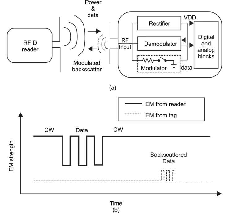 Takie rozwiązanie sprawdza się doskonale zarówno w tagach aktywnych, jak i semi-aktywnych (zwanych często mianem BAP – Battery-Assisted Passive), które – choć wyposażone w wewnętrzne źródło energii – nie mają własnego nadajnika, ale stosują modulację obciążenia do komunikacji z czytnikiem (więcej informacji podamy w dalszej części artykułu), zaś bateria pełni funkcję pomocniczego źródła energii, np. do zasilania wbudowanych w urządzenie czujników. Jeżeli zastosowany front-end RFID zapewnia funkcjonalność EH, to tag dynamiczny może jednocześnie być… tagiem pasywnym (czyli pozbawionym własnego źródła energii, a zamiast niego zawiera najczęściej dość spory kondensator podtrzymujący).
