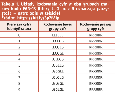 Jak już wspomnieliśmy, poszczególne rodzaje kodów kreskowych diametralnie różnią się pod względem sposobu kodowania poszczególnych znaków, a więc – co za tym idzie – także gęstości zapisu danych, możliwości wykrywania lub minimalizowania ryzyka błędów odczytu, etc. Nie sposób zatem podać jednego, uniwersalnego opisu pozwalającego zrozumieć budowę wszystkich stosowanych w praktyce systemów identyfikacji optycznej. Dlatego w artykule omówimy pokrótce sposób konstrukcji kodów EAN-13 jako doskonały (choć w żadnym wypadku nie uniwersalny) przykład metodologii znakowania paskowego.