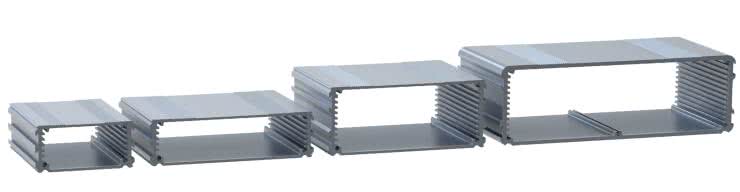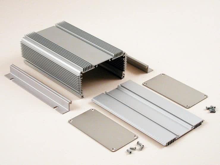 Bardziej zaawansowanym technologicznie – i często znacznie efektywniejszym pod względem termicznym – rozwiązaniem problemu chłodzenia elektroniki jest zintegrowanie radiatora z obudową. O ile w przypadku znacznej części popularnych, aluminiowych obudów wytłaczanych (fotografia 24) sprzężenie chłodzonego elementu (np. tranzystora) z obudową jest utrudnione i możliwe praktycznie tylko poprzez jego przyklejenie za pomocą kleju termoprzewodzącego, to specjalne obudowy ze zintegrowanym radiatorem (fotografia 25) mają przewidziane nie tylko odpowiednie, wewnętrzne szyny montażowe, ale także użebrowaną powierzchnię zewnętrzną wyjmowanej płyty górnej, która zapewnia bardzo dużą powierzchnię chłodzenia, nieosiągalną przy zastosowaniu radiatorów montowanych na poziomie PCB.