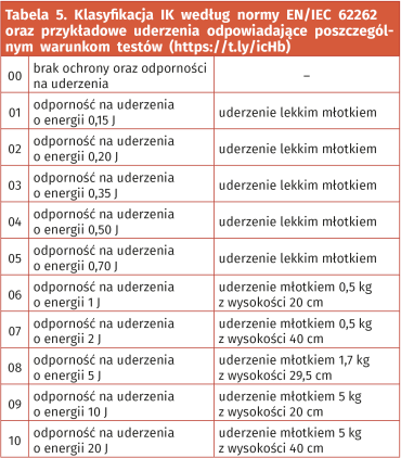 Co ważne, szczegółowe parametry zestawu testowego są określone nie przez normę 62262:2002, ale przez osobny dokument: EN 60068-2-75, w Polsce wprowadzony przez PN-EN 60068-2-75:2015-01. Stopień ochrony IK definiują m.in. producenci kamer monitoringu, które z uwagi na wysokie ryzyko celowego uszkodzenia muszą wytrzymać znacznie silniejsze uderzenia, niż zwykłe kamery CCTV w tworzywowych obudowach (fotografie 11 i 12).