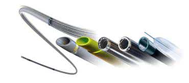 - silikon – obojętny, biozgodny i biostabilny materiał o wysokiej elastyczności, charakteryzujący się jednak dość dużym współczynnikiem tarcia (w porównaniu do poliuretaunu oraz PTFE) oraz mniejszą odpornością na uszkodzenia mechaniczne podczas implantacji (np. w wyniku kontaktu z ostrym narzędziem). Pewnym problemem jest także tendencja silikonu do pęcznienia w kontakcie z płynami, choć i ta cecha materiału została wykorzystana praktycznie. Niektórzy producenci oferują bowiem specjalne… płyny spęczniające, ułatwiające pracę z silikonowymi rurkami o małym przekroju (poprzez chwilowe rozszerzenie światła rurki znacznie łatwiej jest umieścić w jego wnętrzu montowane elementy). Jako przykład wysoce biozgodnego silikonu medycznego można wskazać dwuskładnikowy MED-4719 marki NuSil.