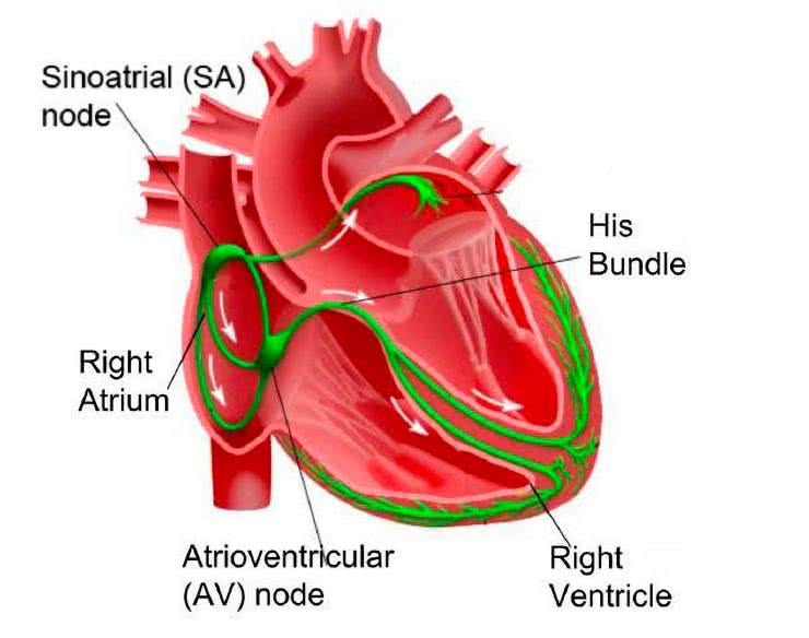 W zdrowym sercu tempo i kolejność kurczenia się przedsionków oraz komór są nadawane przez tzw. układ bodźcotwórczo-przewodzący, będący grupą wyspecjalizowanych kardiomiocytów (komórek mięśnia sercowego). Źródłem rytmicznych pobudzeń o częstotliwości regulowanej w pewnym zakresie przez inne, pozasercowe czynniki (autonomiczny układ nerwowy oraz hormony) jest tzw. węzeł zatokowo-przedsionkowy, a taki „zdrowy”, naturalny, rytm jest z tegoż powodu nazywany rytmem zatokowym. Układ bodźcotwórczo-przewodzący można wyobrazić sobie jako swego rodzaju „wewnętrzne okablowanie” mięśnia sercowego (rysunek 1), które jednak nie tylko przewodzi impulsy elektryczne wywołujące skurcze, ale także opóźnia je, przy czym czasy propagacji w poszczególnych odcinkach znacząco się różnią, dzięki czemu akcja serca może być hemodynamicznie skuteczna (tj. odpowiednia ilość krwi, spływającej pod niskim ciśnieniem do przedsionków, jest następnie pompowana do płuc oraz aorty).