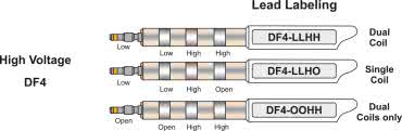 Złącza IS-1 i IS-4 są przeznaczone do pracy z niskimi napięciami (zwykle rzędu kilku woltów), stosowanymi w kardiostymulatorach. Wszczepialne kardiowertery-defibrylatory wymagają jednak rozwiązań znacznie bardziej zaawansowanych pod względem wytrzymałości dielektrycznej. Dlatego też urządzenia ICD oraz CRT-D korzystają z dedykowanych złączy typu DF-1 oraz DF-4 – ich budowa jest bardzo zbliżona do IS-1/IS-4, nawet gołym okiem można jednak dostrzec pewną różnicę – wtyki DF-4 mają końcowy pin o zmniejszającej się skokowo średnicy, podczas gdy złączach IS-4 stopniowanie średnicy nie występuje (pin ma kształt walcowy). Na rysunku 15 pokazano spotykane w praktyce konfiguracje połączeń DF-4, w tym wersje mieszane (wyprowadzenia niskonapięciowe i defibrylacyjne w ramach tej samej elektrody).