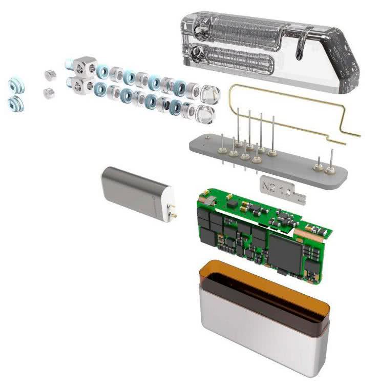 Hermetyczna, biozgodna, niemagnetyczna obudowa implantu jest jednym z kluczowych aspektów w kwestii bezpieczeństwa oraz niezawodności urządzenia. Od wielu lat standardem jest umieszczanie urządzeń implantowalnych w lekkich, biokompatybilnych obudowach tytanowych. Ich budowa opiera się zwykle na konstrukcji dwuczęściowej – w jednej z precyzyjnie wyprofilowanych pokryw umieszczana jest płytka drukowana (zwykle wykonywana w formie sztywno-giętkiej) wraz z zasilaniem (baterią i – w przypadku ICD – kondensatorem wysokonapięciowym) oraz specjalnym, hermetycznym przepustem (fotografia 17), służącym do połączenia ze stykami, znajdującymi się w bloku złączy elektrod (określanym często mianem header).