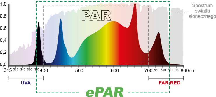 Ten rozszerzony zakres jest określany jako ePAR (Extended Photosynthetically Active Radiation) (rysunek 4).