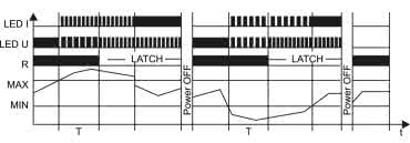 W najbardziej rozbudowanym trybie pracy okienkowej z zatrzaskiem – WD+L (rysunek 33) przekaźnik jest rozłączany, jeżeli wartość prądu wykroczy poza zakres ograniczony przez nastawy pokręteł MAX i MIN (przez czas większy lub równy nastawie DELAY), ale jego ponowne włączenie jest możliwe dopiero po chwilowym odłączeniu zasilania systemu. Taki tryb pracy pozwala nie tylko na monitorowanie prądu jako takiego, ale zabezpiecza przed zagrożeniami, jakie mogłyby czyhać na operatora lub osoby postronne w momencie nagłego, niespodziewanego włączenia napędu maszyny (np. po usunięciu awarii).