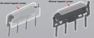 Wysokiej klasy przekaźniki kontaktronowe produkowane są w wersjach z wewnętrznym ekranowaniem za pomocą warstwy mu-metalu (fotografia 5), chroniącej styki przed działaniem zewnętrznych pól od sąsiadujących komponentów.