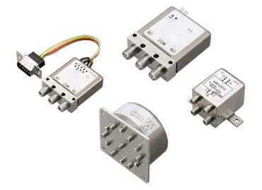 W solidnych, metalowych obudowach (fotografia 10) znajdują się wysokiej klasy przekaźniki o koncentrycznej konstrukcji torów sygnałowych, zdolne do pracy z częstotliwością nawet do 26,5 GHz (50 Ω). Dostępne konfiguracje obejmują styki typu SPDT, SP6T oraz specjalną wersję 4-portową, określaną mianem transfer i umożliwiającą łączenie poszczególnych gniazd w charakterystyczny, „macierzowy” sposób, opisany na rysunku 9. Także w tej serii dostępne są wersje monostabilne oraz bistabilne, przy czym te ostatnie występują w dwóch odmianach: pasywnej (z dwiema cewkami sterującymi) oraz aktywnej, z wbudowanym sterownikiem TTL.