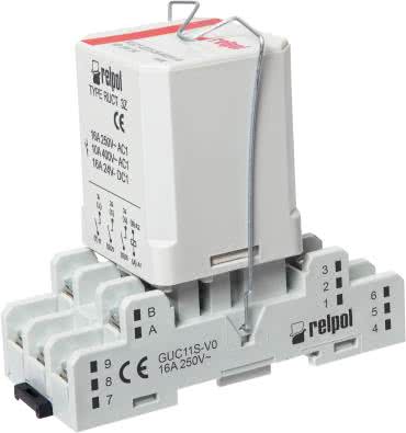 Wysokie wymagania środowiskowe stawia przed inżynierami także branża kolejowa. Wspomniana już wcześniej wielokrotnie firma Relpol wdrożyła do sprzedaży wiele modeli przekaźników, przeznaczonych do pracy w średnim zakresie prądów obciążenia (od 6 do 16 A) i montowanych w gniazdach wtykowych lub na płycie. Na fotografii 25 przedstawiono przykładowy przekaźnik z serii PRUCT-M, wyposażony w gniazdo GUC11S (montowane na szynie DIN / TS-35) i obejmę sprężynową MBA.