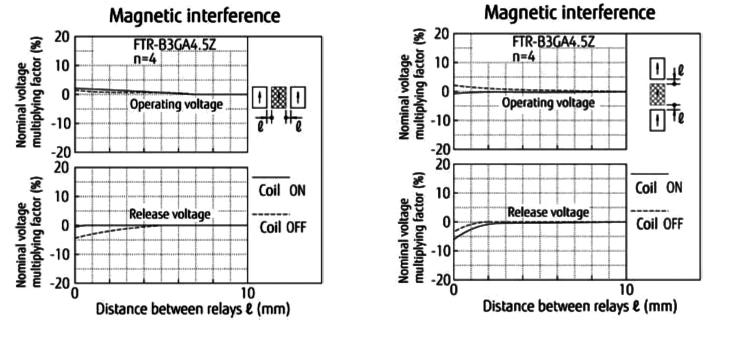 Co ciekawe, firma Fujitsu udostępniła nawet charakterystyki przesłuchów magnetycznych pomiędzy pracującymi obok siebie przekaźnikami z serii FTR-B3 (rysunek 5) – choć z pozoru zagadnienie magnetycznych oddziaływań pomiędzy cewkami a kotwicami pracujących blisko siebie przekaźników może wydawać się niezbyt istotne, to zyskuje ono znaczenie w rozbudowanych multiplekserach (np. w kartach rozszerzeń systemów DAQ/ATE – fotografia 4).