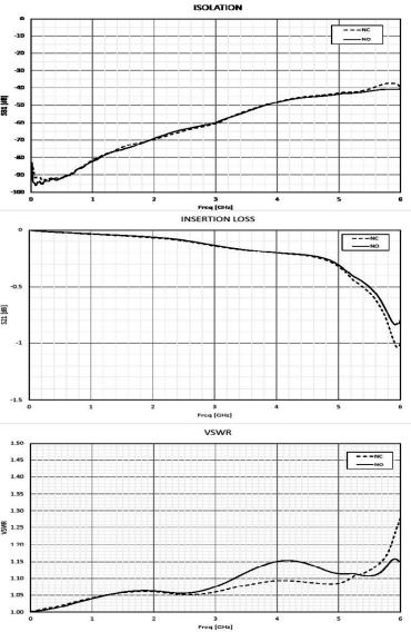 Interesującą ofertę przekaźników RF ma również marka Axicom/TE Connectivity – warto zwrócić uwagę szczególnie na serię HF6 (fotografia 12), oferującą doskonałe parametry w zakresie izolacji (80 dB @ 900 MHz, 60 dB @ 3 GHz oraz 30 dB @ 6 GHz), strat wtrąceniowych (0,05 dB @ 900 MHz, 0,15 dB @ 3 GHz oraz 0,8 dB @ 6 GHz) oraz VSWR (1,05 @ 900 MHz, 1,10 @ 3 GHz oraz 1,40 @ 6 GHz) – patrz rysunek 12.
