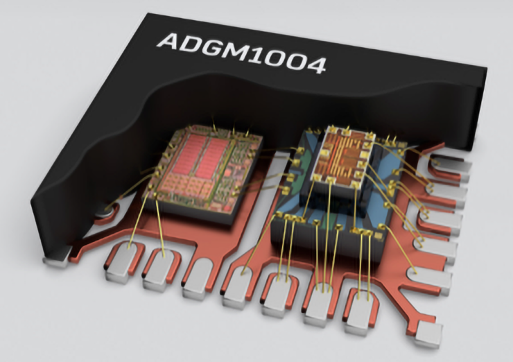 Wspomniany powyżej problem wysokiego napięcia wymaganego do sterowania belki został także dostrzeżony przez konstruktorów z firmy Analog Devices, którzy w oferowanym przez ADI układzie ADGM1004 zaimplementowali wbudowany generator wysokiego (z punktu widzenia elektroniki cyfrowej) napięcia, rzecz jasna wraz ze wszystkimi obwodami dodatkowymi: translatorami poziomów logicznych, oscylatorem oraz interfejsem SPI (współdzielącym wyprowadzenia I/O układu z wejściami poszczególnych kanałów) i sterownikami wysokonapięciowymi, połączonymi z wewnętrzną pompą ładunkową.