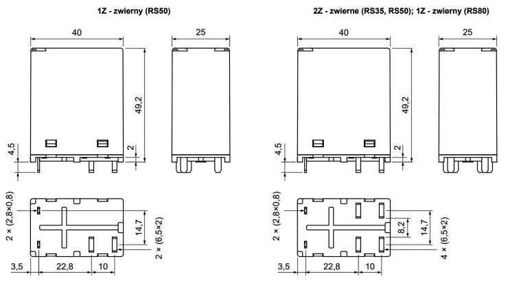 W segmencie niewielkich przekaźników do montażu na PCB firma Panasonic oferuje ponadto 3-gigahercowe przekaźniki z serii RS o mocy do 10 W, w wersjach o impedancji 50 lub 75 Ω oraz ze stykami w konfiguracjach monostabilnych i bistabilnych (1- oraz 2-cewkowych) – wymiary oraz dostępne układy styków i cewek części z nich przedstawiono na rysunku 8.
