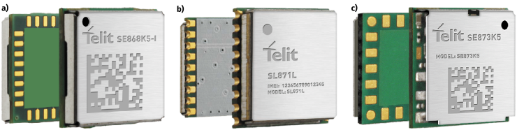 W ofercie firmy Telit większość modułów jest zdolna do odbioru sygnałów z wielu konstelacji. Przykładem tego mogą być moduły z serii SE868xx, moduł SE871L lub SE873K5, pokazane, odpowiednio na fotografiach 3a, 3b oraz 3c. W przypadku modułów Telita domyślnie włączony jest odbiór GPS i GLONASS.