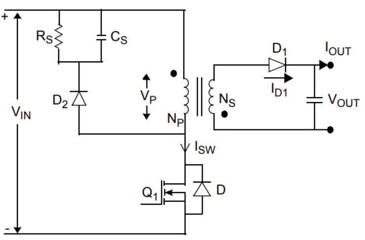 Najprostsze konwertery Flyback zawierają obwód rezystorowo-kondensatorowo-diodowy (RCD), który umożliwia rozproszenie energii zgromadzonej w indukcyjności upływu transformatora. Chroni to główny wyłącznik zasilania konwertera przed przeciążeniem elektrycznym związanym ze skokami napięcia drenu podczas wyłączania Q1. Niestety, straty mocy w elementach RCD pogarszają ogólną wydajność systemu i generują niepożądane ciepło. Straty te rosną wraz z częstotliwością przełączania.