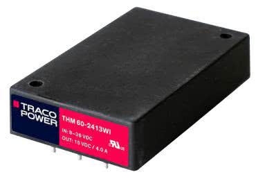 Jeżeli w danym projekcie wymagania odnośnie, mocy wyjściowej są znacznie wyższe, to warto też zwrócić uwagę na serię THM 60WI marki Traco Power (fotografia 30) – moc w tym przypadku wynosi już 60 W, prąd upływu nie przekracza 4,5 μA, a izolacja spełnia wymogi 2×MOPP (5000 V AC). Footprint przetwornicy mieści się w obrysie 57,9×36,8 mm – naprawdę niezły wynik jak na tak wyśrubowane parametry techniczne!