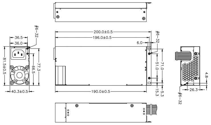Rzecz jasna, tego typu moduły nie są przeznaczone do realizacji zasilania części aplikacyjnych typu BF (ani tym bardziej CF) – stąd też producent nie podaje w specyfikacji technicznej wartości prądu upływu pacjenta, a w nocie katalogowej znajdziemy jedynie informację o upływie uziomowym. Wszystkie pozostałe warunki oczekiwane od zasilaczy medycznych są rzecz jasna spełnione – dotyczy to m.in. izolacji 2×MOPP czy kompatybilności elektromagnetycznej. Warto dodać, że ten sam producent ma w swojej ofercie także zasilacze ATX o bardziej kompaktowej konstrukcji, (fotografia 22) o wysokości nieznacznie tylko przekraczającej 40 mm (rysunek 6) – mowa o serii MP1S.