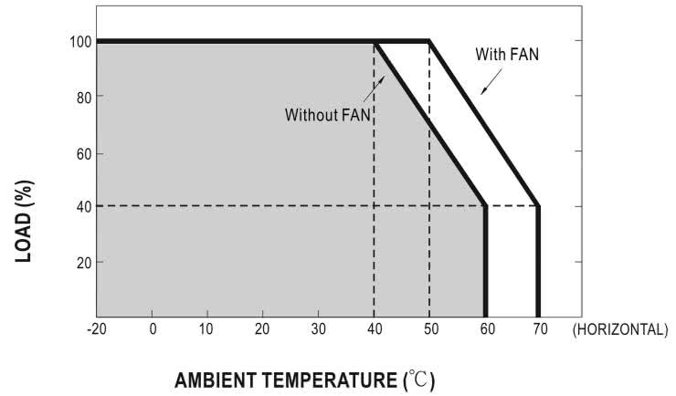 Chłodzenie metodą konwekcji swobodnej wiąże się oczywiście z pewnymi ograniczeniami – i to nie tylko w zakresie dopuszczalnej mocy obciążenia (która zależy od temperatury otoczenia – rysunek 4), ale także z lokalizacją modułu zasilacza względem innych bloków urządzenia.