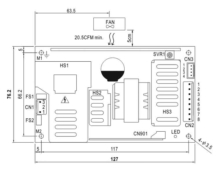 Konstrukcje o mniejszej mocy wyjściowej (fotografia 7) mogą nierzadko pracować bez wymuszonego chłodzenia, o ile obudowa docelowego urządzenia zawiera odpowiednie otwory wentylacyjne, z kolei konstrukcje o wyższej mocy (fotografia 8) wymagają często strumienia powietrza o określonych parametrach (przepływ objętościowy, kierunek strumienia, etc.), który konstruktor sprzętu musi zapewnić we własnym zakresie – patrz rysunek 3.
