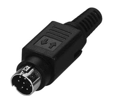 Żadne z tych rozwiązań (przynajmniej w swojej klasycznej formie) nie zapewnia jednak skutecznego środka chroniącego przed przypadkowym rozłączeniem. O ile w przypadku domowego ciśnieniomierza czy nawet (w ostateczności) specjalistycznego urządzenia pomiarowego (np. dopplera naczyniowego) ryzyko powstałe w wyniku utraty połączenia z zasilaczem jest niewielkie lub niemal żadne, o tyle zdecydowanie nie można tego powiedzieć o kardiomonitorze przeznaczonym do bieżącego nadzoru funkcji życiowych pacjenta. W zasilaczach typu desktop często spotykanym rozwiązaniem jest zastosowanie wtyku mini DIN (fotografia 5), który – za sprawą wbudowanej blokady mechanicznej – zapewnia niezawodne połączenie z kompatybilnym gniazdem i uniemożliwia przypadkowe rozłączenie.