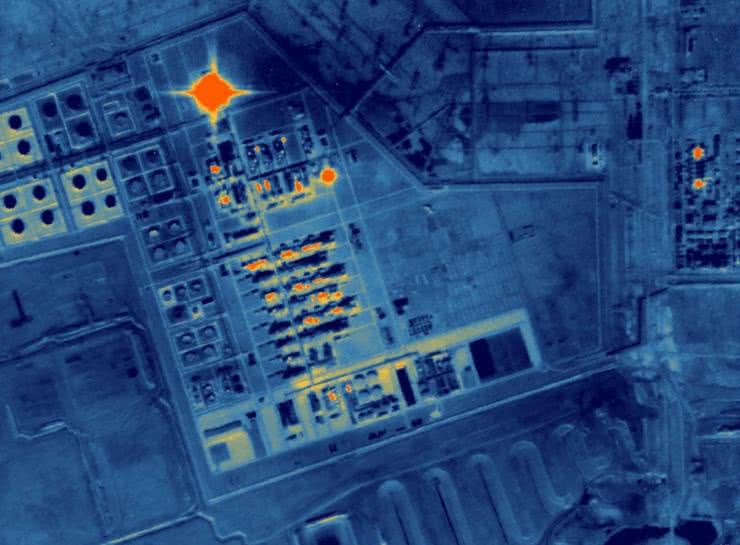 Przykładem takiej platformy może być HotSat-1, wystrzelony przez Europejską Agencję Kosmiczną w czerwcu 2023 roku. Na swoim pokładzie miał on sensor MWIR (pracujący w dwóch zakresach: 3,7…5 μm w nocy i 4,5…5 μm for za dnia). Rozdzielczość przestrzenna pomiaru wynosiła między 3,5 m a 6,8 m, w zależności od kąta obserwacji. Operator platformy nie podaje danych dotyczących innych danych sensora, ale chwali się czułością na poziomie 2 K, co przekłada się typowo na NETD na poziomie ok. 30 mK. Przykładowy obraz z tego satelity pokazano na fotografii 4. Niestety w grudniu 2023 roku satelita uległ awarii. W tym roku SatVu, operator tych satelitów, zamierza wystrzelić kolejne dwa – HotSat-2 i HotSat-3.