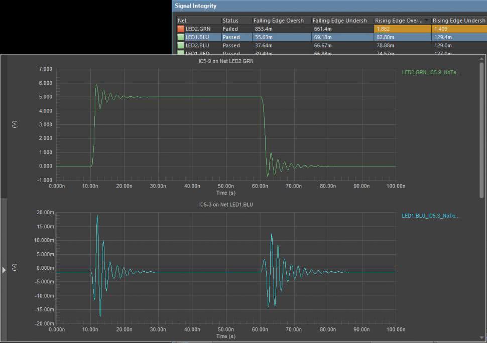 Drugim filarem nowoczesnych narzędzi EDA – obok projektowania geometrycznego PCB – jest symulacja działania projektowanego układu. Możliwość zweryfikowania poprawności schematu i płytki na długo przed powstaniem fizycznych prototypów pozwala oszczędzić czas i pieniądze, unikając błędów projektowych, zwłaszcza w przypadku kosztownych płyt wielowarstwowych (HDI), obwodów dla szybkich sygnałów (np. magistrale DDR) czy torów radiowych. Współczesne pakiety EDA integrują różnorodne rodzaje symulacji: od klasycznej symulacji SPICE dla obwodów analogowych, poprzez analizę integralności sygnałowej (Signal Integrity – rysunek 8) w szybkich systemach cyfrowych, aż po symulacje integralności zasilania (Power Integrity) oraz obliczenia termiczne i elektromagnetyczne w najbardziej zaawansowanych przypadkach.