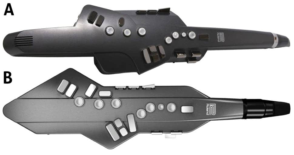 EWI5000, poza wyjściem USB, oferuje także wyjście MIDI DIN, dzięki któremu może współpracować z zewnętrznymi syntezatorami i modułami brzmieniowymi. EWI Solo ogranicza się do MIDI obsługiwanego przez USB. Z kolei Roland oferuje serię Aerophone, której dobrymi przedstawicielami są modele Aerophone AE10G i Aerophone Go (AE05) – fotografia 24.
