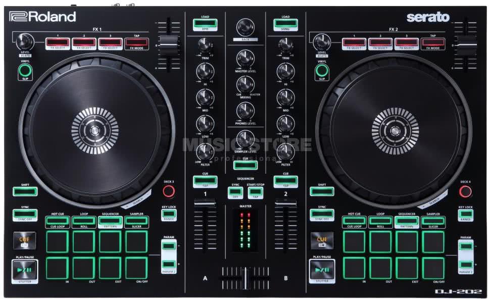 Ma on dwa podświetlane koła JOG, którymi można kontrolować wirtualne gramofony oraz kontroler miksera czterokanałowego. Jest to fizyczna reprezentacja programu Traktor, dołączonego do tego kontrolera. Innym przykładem może być Roland DJ 202 (fotografia 19) dedykowany dla programu Serato DJ Intro.