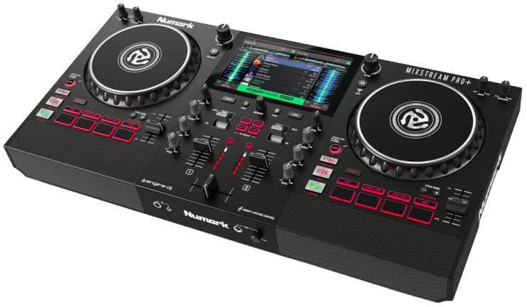 Jednocześnie jest też kontrolerem MIDI współpracującym między innymi z programem Serato DJ Lite. Bezpośrednim konkurentem Omnis-Duo jest Numark Mixstream Pro+ (fotografia 21), który oferuje podobne możliwości pracy niezależnej, z dość rozbudowanym system Engine DJ, jednakże umożliwia też współpracę z komputerem, a nawet obsługę oświetlenia przez protokoły Philips Hue i DMX. Jakby tego było mało, sprzęt oferuje dodatkowe wsparcie dla protokołu Ableton Link. Mixstream Pro+ posiada też wbudowane głośniki, choć raczej niewielkiej mocy.