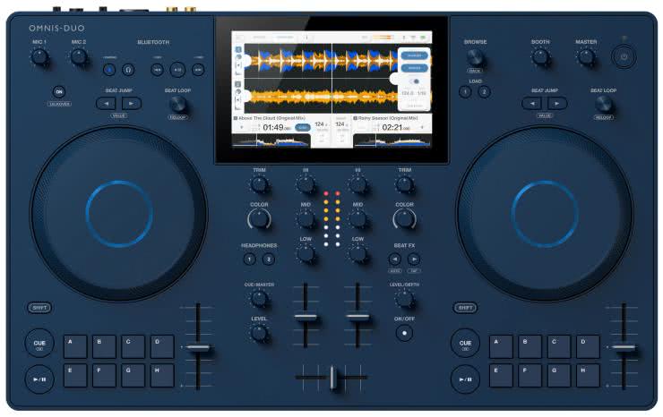 Z kolei produkt firmy AlphaTheta, Omnis-Duo (fotografia 20), jest urządzeniem typu all-in-one, to znaczy ma wbudowane własne oprogramowanie DJ-skie, może korzystać ze zbiorów zapisanych na kartach SD, napędach USB czy pobierać je przez Wi-Fi.