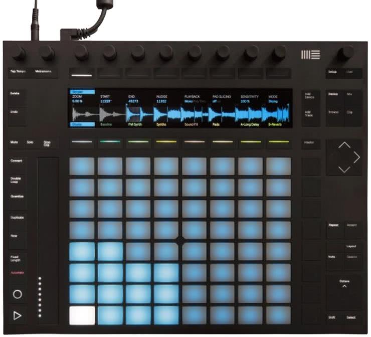 Firma Ableton ma własne kontrolery, jak na przykład Push 2 (fotografia 15) sprzedawany wraz z pełną wersją oprogramowania Ableton Live. Kontroler ten, poza głęboką integracją z programem, posiada też wyświetlacz, który zapewnia dodatkowe informacje kontekstowe lub wizualizację odtwarzanej próbki, sekwencji lub utworu. Poza dodatkowymi przyciskami do programu kontroler posiada też osiem enkoderów, które ponadto wykrywają dotknięcie gałki (metodą pojemnościową), co ułatwia przypisywanie ich do parametrów – w kontrolerach bez tej funkcjonalności gałką trzeba lekko pokręcić, by program ją rozpoznał. Warto dodać, iż sama licencja programu Ableton Live Suite kosztuje prawie tyle samo, co ten kontroler, więc jego zakup to dobry wybór.