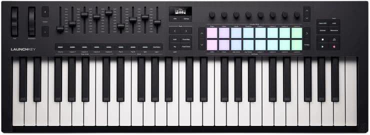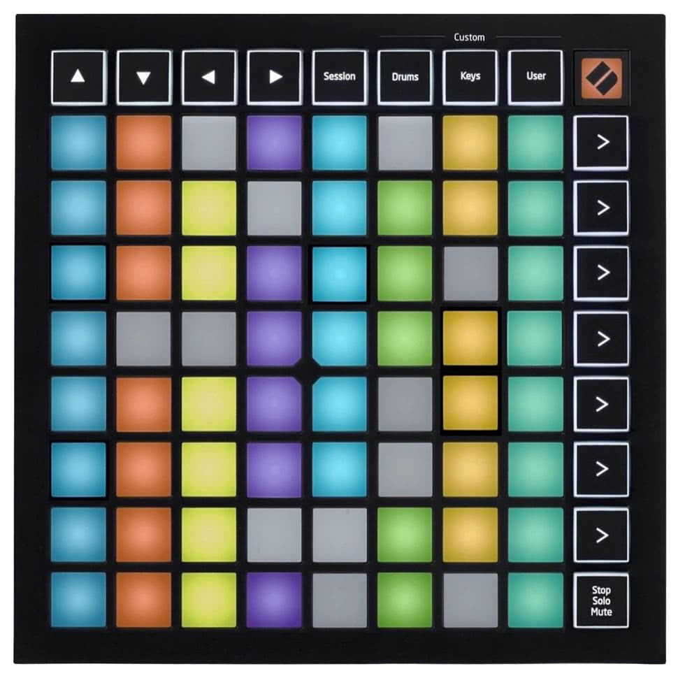 Novation Launchpad Mini Mk 3 (fotografia 14) to ciekawy kontroler przeznaczony do pracy z programem Ableton Live. Zawiera 64 podświetlane pady w układzie 8×8 oraz dodatkowe przyciski kontrolne przeznaczone właśnie do współpracy z tym programem. Producent twierdzi, iż kontroler może pracować z innymi programami DAW, ale zdaniem Autora nie będzie to wygodne. Same pady mogą też pełnić funkcję padów perkusyjnych i klawiatury muzycznej.