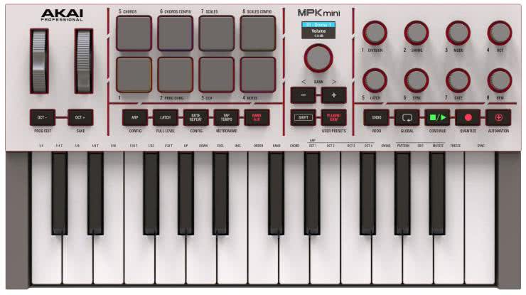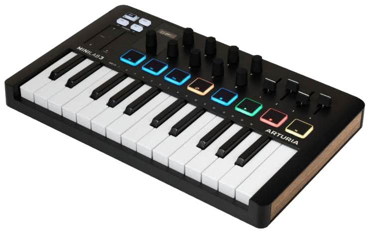 Sprawa ma się zgoła odmiennie w przypadku klawiatur sterujących MIDI. Modele takie jak Arturia MiniLab 3 (fotografia 7) czy Akai MPK Mini 4 (fotografia 8) mają tylko 25 klawiszy, ale jest to liczba wystarczająca do pracy w programach DAW.