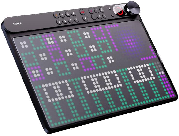 Drugim, znacznie droższym kontrolerem, jest Erae 2 firmy Embodme (fotografia 31) – kontroler, który nie ma jednej, przypisanej funkcji. Zamiast tego użytkownik wybiera, co mu jest potrzebne do pracy, a panel wyświetla właściwe powierzchnie kontrolne. Powierzchnia może być zdefiniowana dowolnie, a każde zdefiniowane pole kontrolne może wysyłać różne komendy MIDI w standardzie 2.0. Firma Embodme oferuje nie tylko sam kontroler, ale też różne „skóry” do nałożenia na powierzchnię kontrolną, zmieniające jej teksturę zgodnie z preferencjami użytkownika. Jest to niewątpliwie najbardziej unikalny kontroler MIDI dostępny na rynku.
