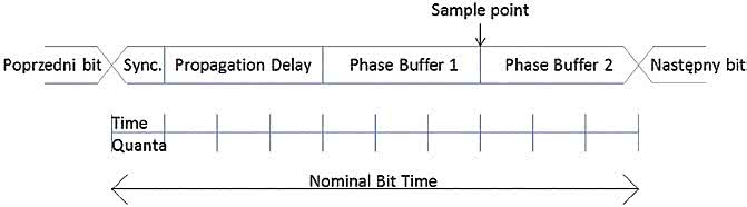 Rysunek 4. Na czas wysłania bitu na magistralę Nominal Bit Time składają się cztery segmenty podzielone na jednostki Time Quanta