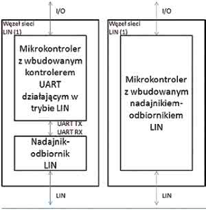 Koncepcje budowy węzłów sieci LIN. Do zbudowania węzła sieci LIN używane są typowo dwa układy elektroniczne. Pierwszym z nich jest mikrokontroler wyposażony w interfejs UART (mogący pracować w trybie LIN).