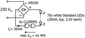 <p style="width: 304px;">Rysunek 2. Zasilanie zespołu diod LED ze źródła 230 V<sub>AC</sub></p>