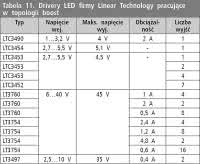 <p><strong>Linear Technology</strong>. Ten producent jest dobrze znany z wytwarzania układów przeznaczonych do budowania zasilaczy o różnym przeznaczeniu. Dlatego też w jego ofercie nie mogło zabraknąć układów do zasilania LED. W tabelach 11...17 umieszczono skrócony przegląd oferty LT.</p>