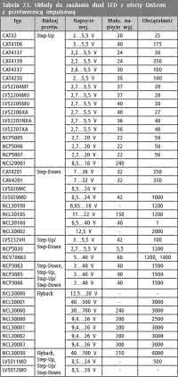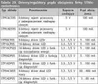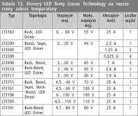 <p>W tabeli 29 zamieszczono wykaz driverów - regulatorów prądu obciążenia. W tabelach 30 i 31 wymieniono drivery pracujące w konfiguracjach Step-Up i Step-Down.</p>