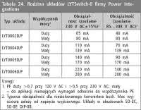 Power Integrations. Firma koncentruje się na wytwarzaniu układów scalonych przeznaczonych do zasilaczy impulsowych. W jej ofercie znajduje się kilka rodzin driverów do zasilania diod LED. Poszczególne rodziny są wymienione w tabelach 24...27. Ich charakterystyczną cechą jest wbudowany w strukturę tranzystor kluczujący. Układy te nie wymagają również dodatkowego zasilacza dla części cyfrowej.
