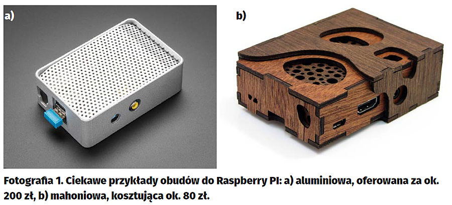 Gotowe moduły do komputerów jednopłytkowych można podzielić na dwie podstawowe kategorie: moduły mechaniczne i elektroniczne lub elektro mechaniczne. Te pierwsze obejmują wszelkiego rodzaju obudowy (fotografia 1) i podstawki, które ułatwiają montaż i pozwalają chronić urządzenie. Bywają dostępne w wersjach z uszczelnieniami i w wykonaniach z różnych materiałów. Nie będziemy ich opisywać, gdyż dobiera się je przede wszystkim na podstawie wyglądu.