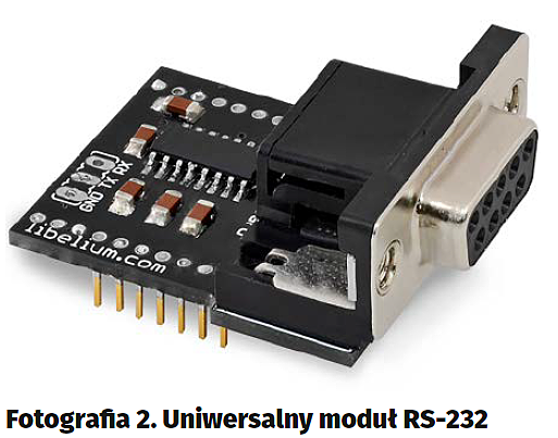 RS232 Istnieje wiele uniwersalnych modułów do realizacji komunikacji w standardzie RS-232, który świetnie nadaje się do łączności ze starszymi urządzeniami wykorzystującymi 12-woltowy interfejs szeregowy. Pasują one zarówno do Raspberry PI, jak i Arduino. Przykładem takiego modułu jest przedstawiony na fotografii 2 bloczek, którego wyprowadzenia bezpośrednio pasują do formatu wykorzystywanego przez produkty z rodziny XBee. Koszt takiego modułu to około 50…75 złotych. Podobny moduł, ale bezpośrednio dostosowany wymiarami do Raspberry PI, pokazano na fotografii 3.