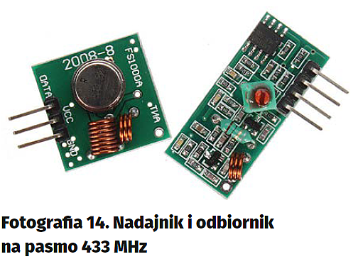 W podobnej cenie można też nabyć zestaw w postaci nadajnika i odbiornika (fotografia 14), pracujących na nielicencjonowanej częstotliwości 433 MHz.