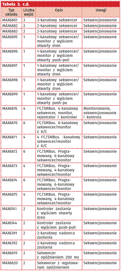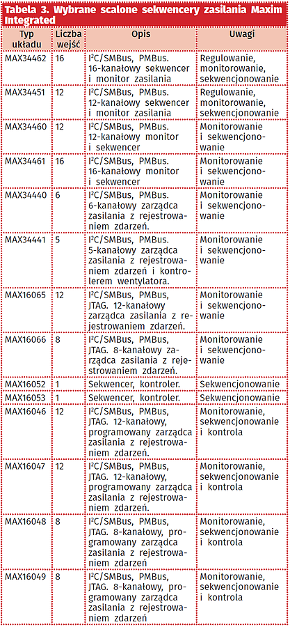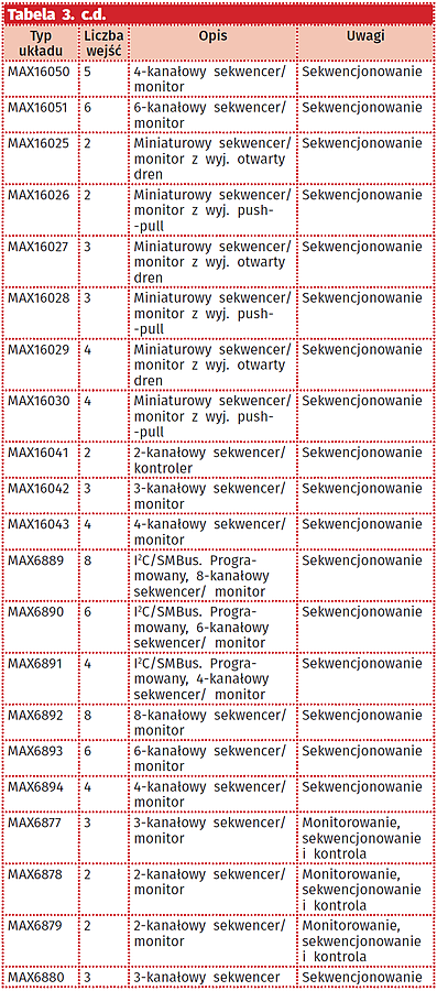 Firma Maxim Integrated oferuje ogromną liczbę układów, od nieskomplikowanych do bardzo rozbudowanych, programowanych za pomocą interfejsu szeregowego (tabela 3).