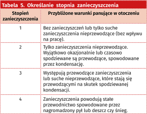Aby ustalić odpowiedni stopień zanieczyszczenia oraz wytrzymałość na impuls napięciowy należy odnieść się do właściwego standardu lub rozważyć dane podane w tabelach 4 i 5. Wybierając odpowiednią wytrzymałość napięciową należy kierować się wiedzą o nominalnej wartości zasilania i na temat kategorii napięciowej (jak podano w normie IEC 60664-1).