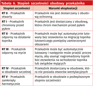 Odporność na warunki środowiskowe jest określana zgodnie z normą IEC 61810-7. Stopień uszczelnienia obudowy przekaźnika opisuje kategoria technologii - wymieniono je w tabeli 6.