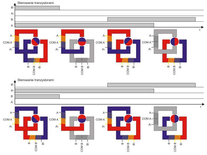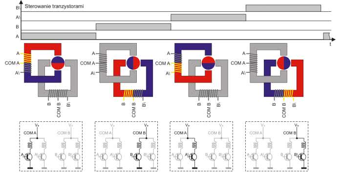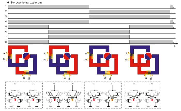 Rysunek 15. Falowe sterowanie pełnokrokowe silnikiem bipolarnym