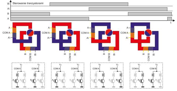 Rysunek 16. 2-fazowe sterowanie pełnokrokowe silnikiem bipolarnym