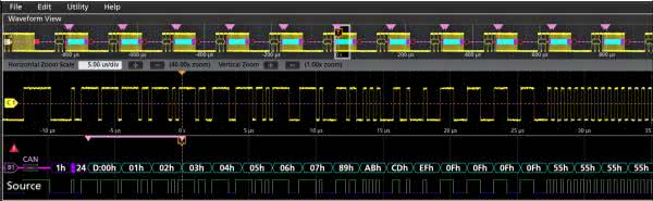 - 32-kanałowy rejestrator stanów cyfrowych z analizatorem magistrali takich jak CAN, FlexRay, USB, czy Ethernet,
